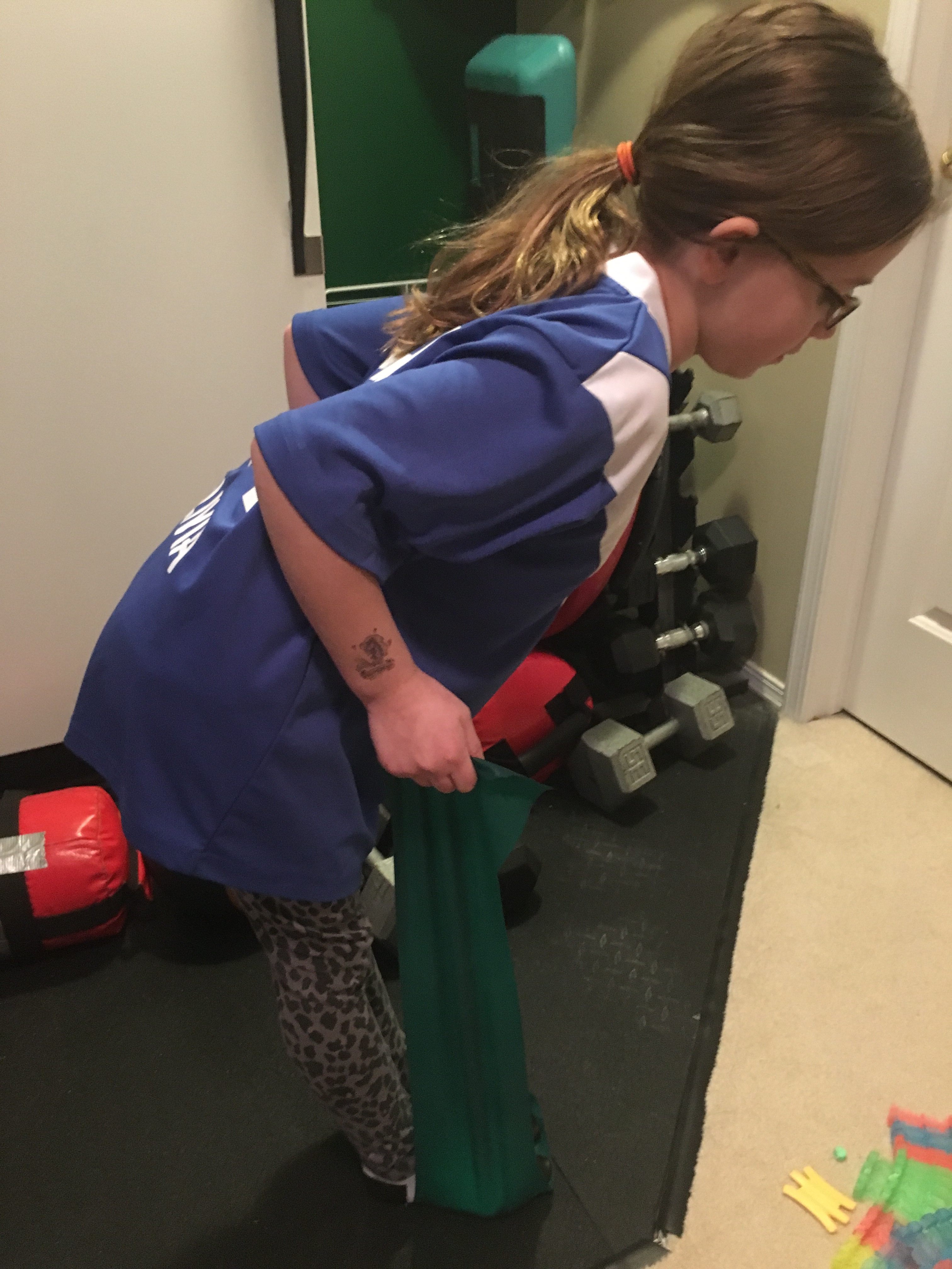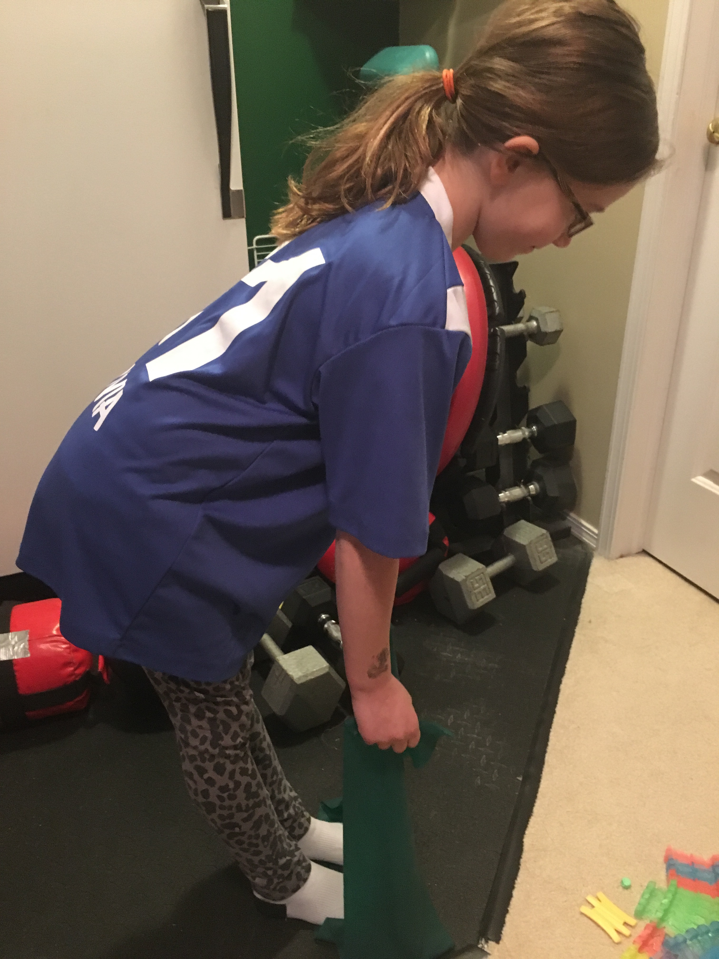 If you’re doing pushups, make sure you do something to strengthen the upper back/ rear deltoid muscles as well. Like my daughter Olivia is showing. This will help relieve future problems for your kids. As well as helping create a better overall workout for them.